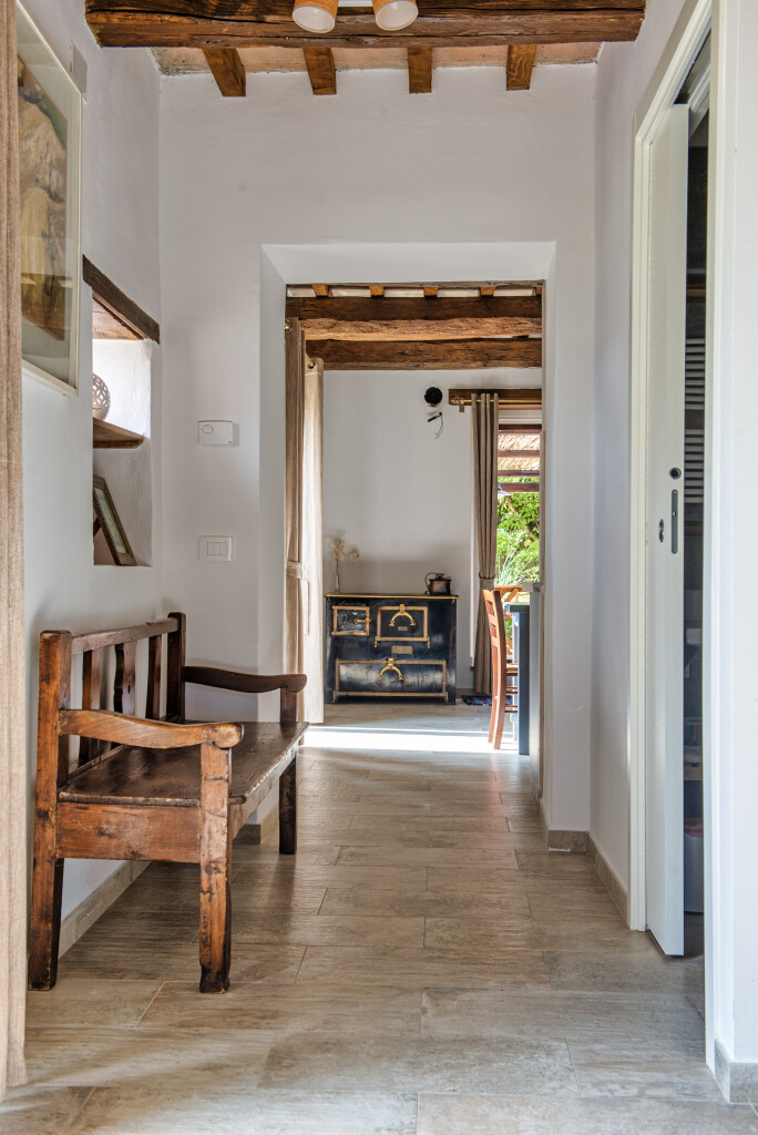 It is located on the ground floor of the smaller house and overlooks the garden. It has a spacious bathroom with the shower. In the living room there is a kitchen corner and a sofa bed to host other two people.
